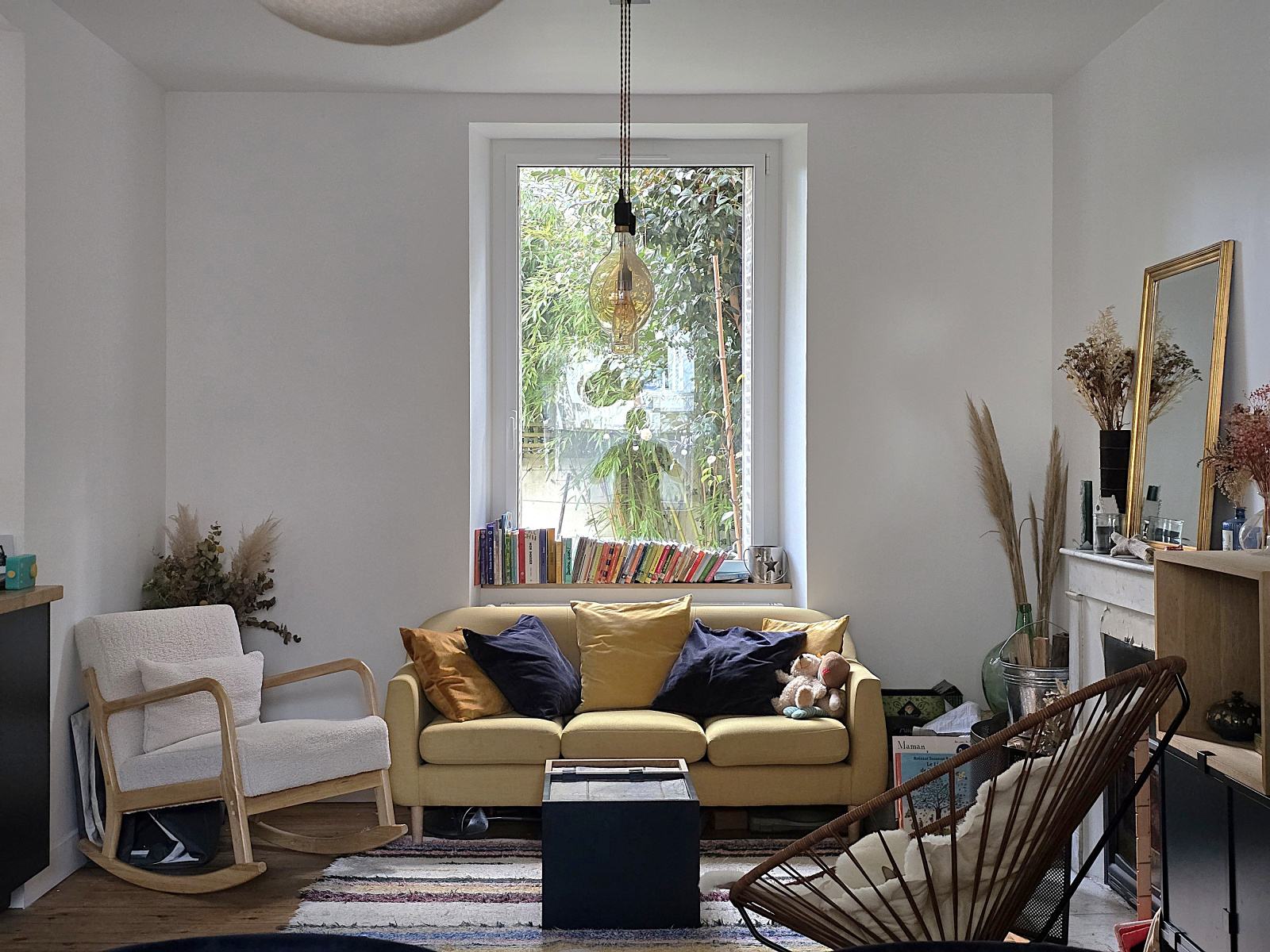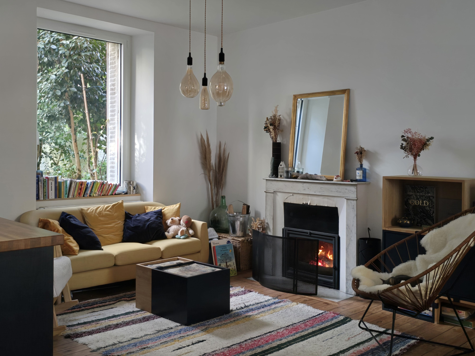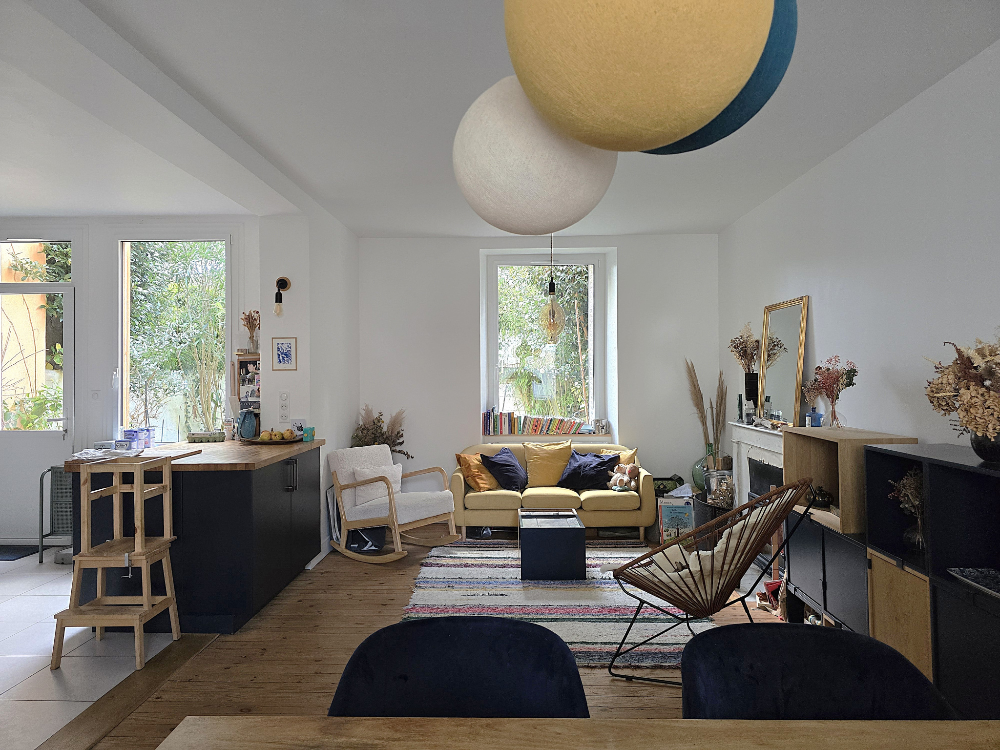 Salon traversant lumineux et chaleureux
